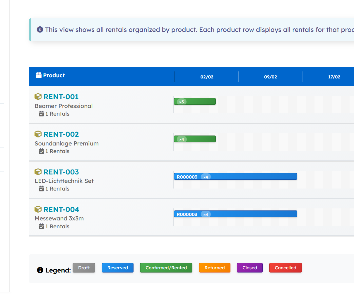 Der Vermieter soll zu jedem Zeitpunkt vollen Überblick über den Status seines Equipments haben.