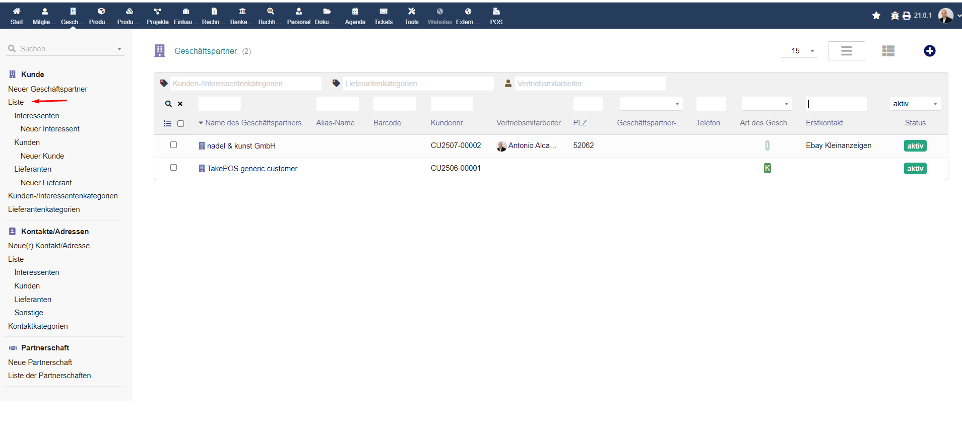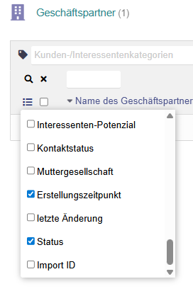 Filtern kannst du beliebig nach den Kategorien oder auch mehreren Kategorien z.B. nach Geschäftspartnern, wenn du die Geschäftspartnerkategorien eingerichtet hast. Nach Datum kannst du mit den Listenfunktionen filtern (abhängig welches Datum du wünschst). Die Spalten kannst du beliebig auch nach Ergänzenden Attributen filtern.