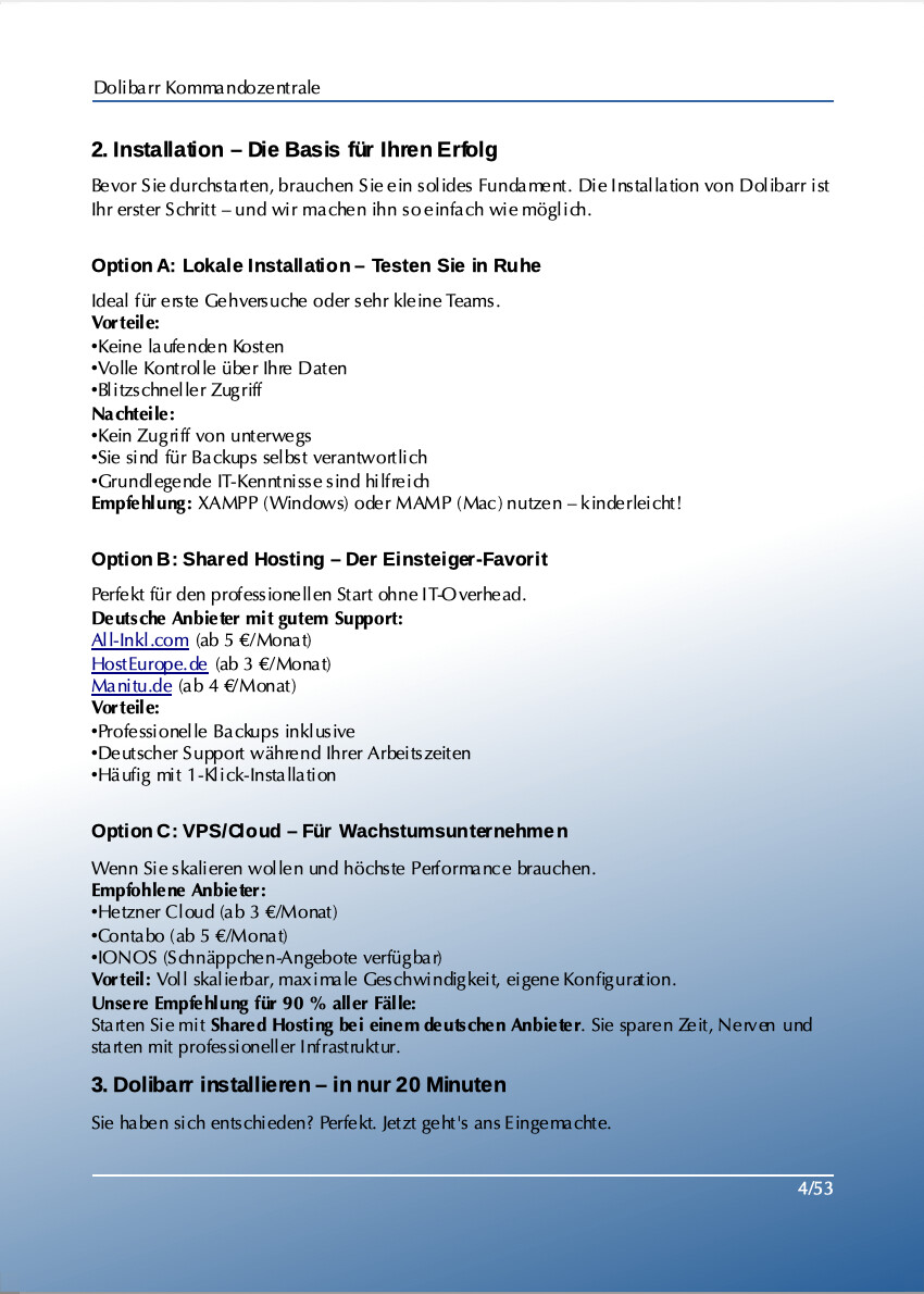 Gerne kann ich dir aber eine Tour durch das System anbieten. Denn ich selbst nutze Dolibarr Seit 2018 (V8) im täglichen, produktiven Einsatz.