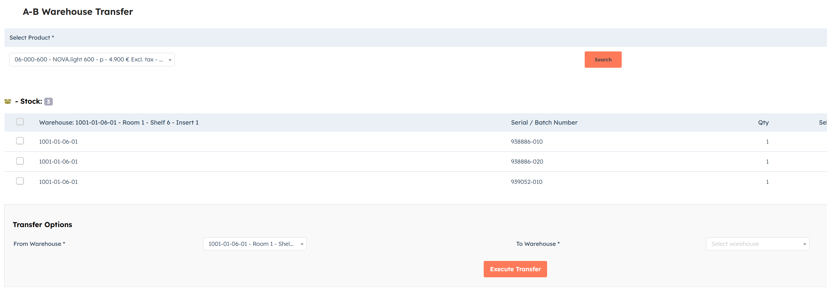 Lager in ein anderes umzubuchen? Über standard „Bulk stock change“ muss jede Serialnummer einzeln eingegeben werden. Das kann bei >50 Produkten viel Zeit in Anspruch nehmen.